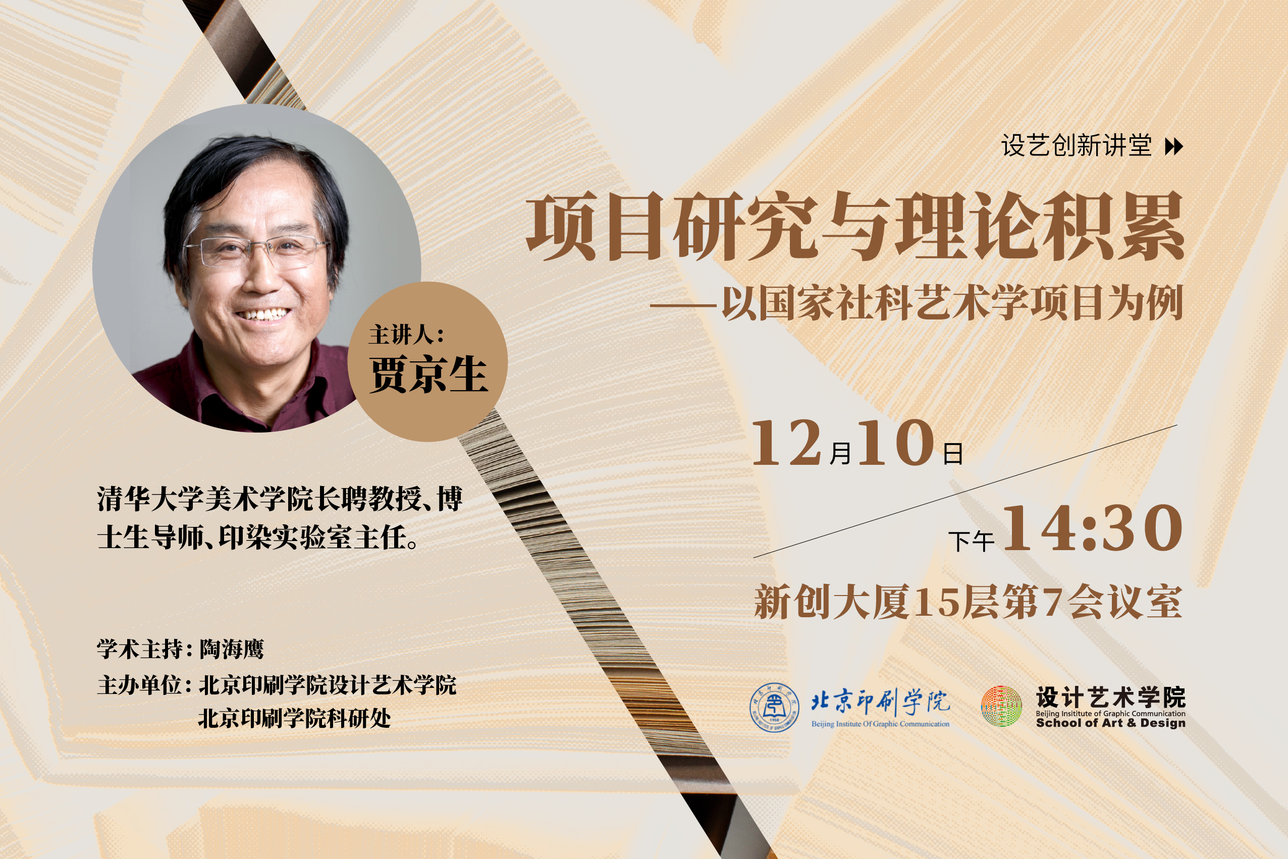 主讲人:贾京生 清华大学美术学院长聘教授、博士生导师、印染实验室主任