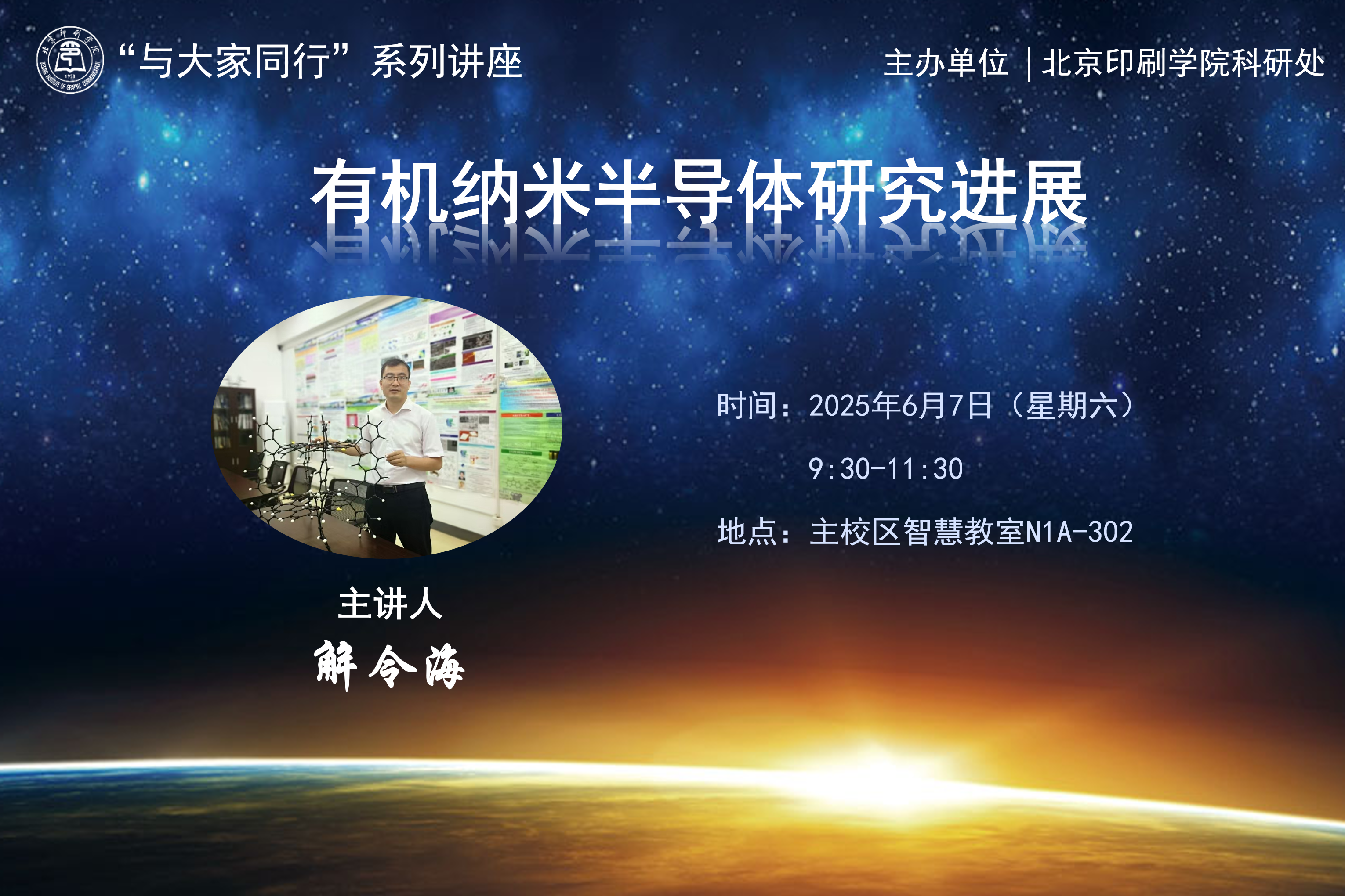 主讲人:解令海,南京邮电大学二级教授、博士生导师、有机电子与信息显示国家重点实验室光电材料研究所所长,享受国务院政府特殊津贴专家、国家有突出贡献中青年专家,国家优秀青年科学基金获得者、教育部新世纪优秀人才计划入选者、江苏省“333工程”第二层次中青年领军人才、江苏特聘教授,江苏省“六大人才高峰”创新人才团队带头人、江苏省高等学校优秀科技创新团队带头人。